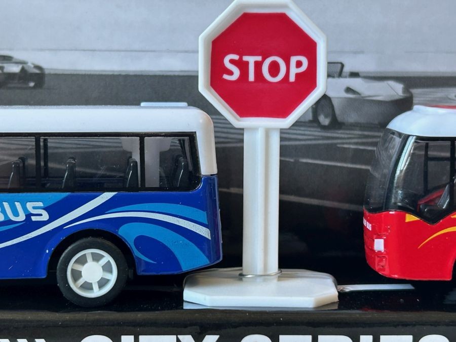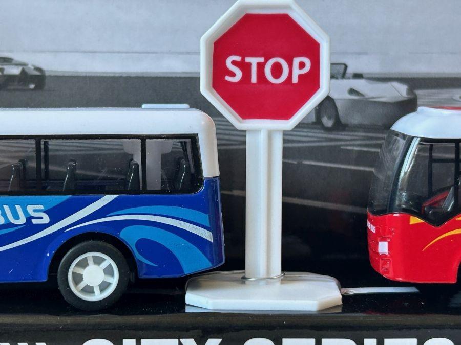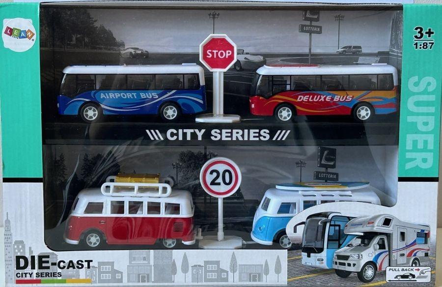 Set 4 Buses Tourist Camper City Series Model Toy Diecast 1:87 Scale Pull Back