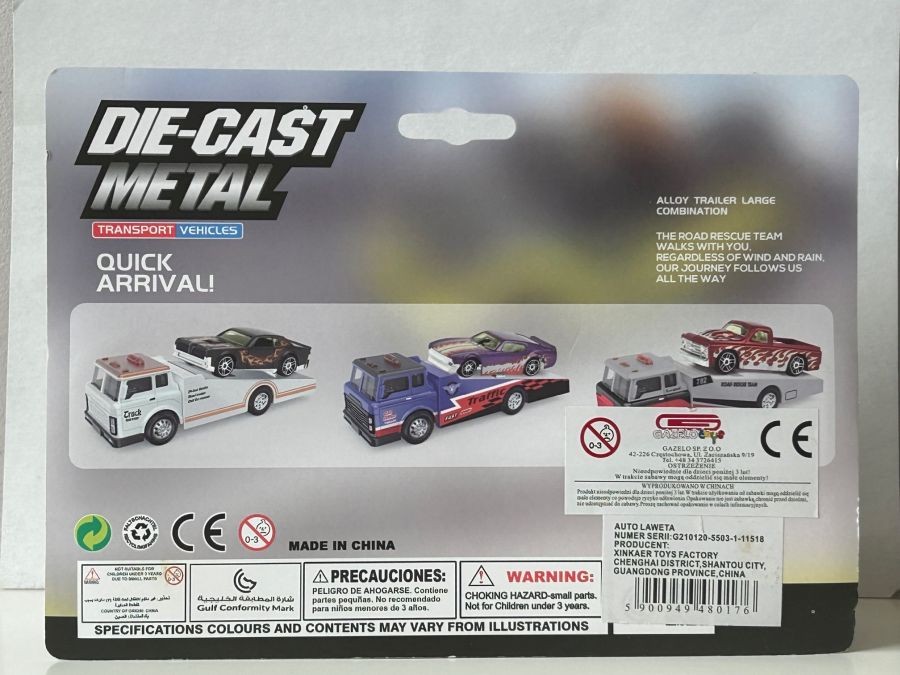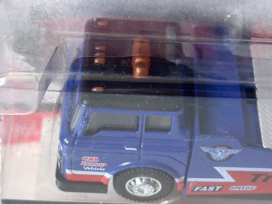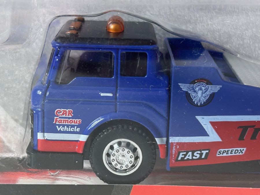 Size (LxWxH, cm): 14-15 cm (approx. truck transporter), 7 cm (approx. car)