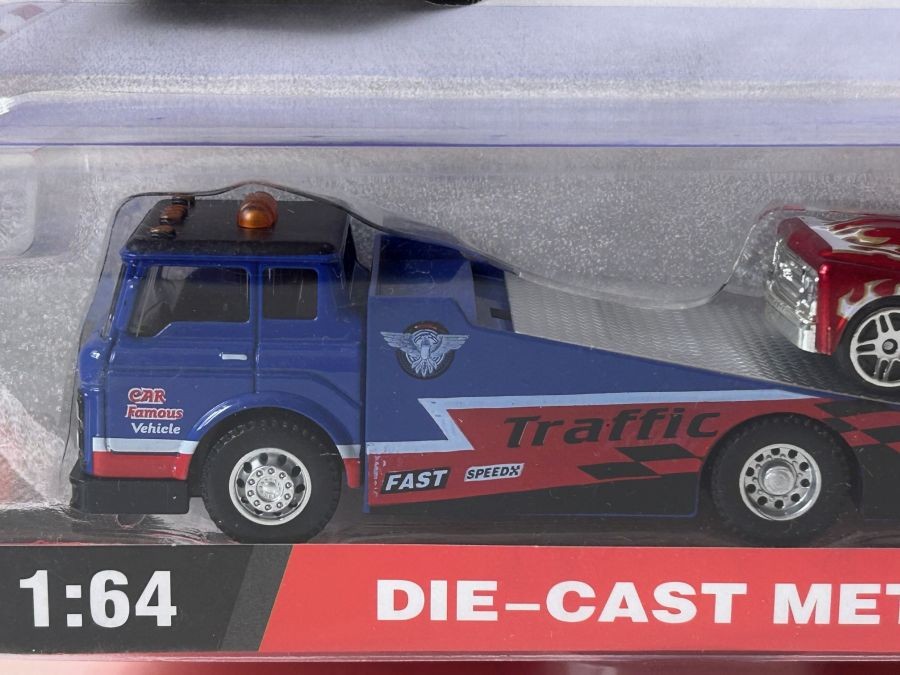Lift Tow Truck Roadside Rescue Transport + Red Car Model Diecast Toy 1:64 Scale