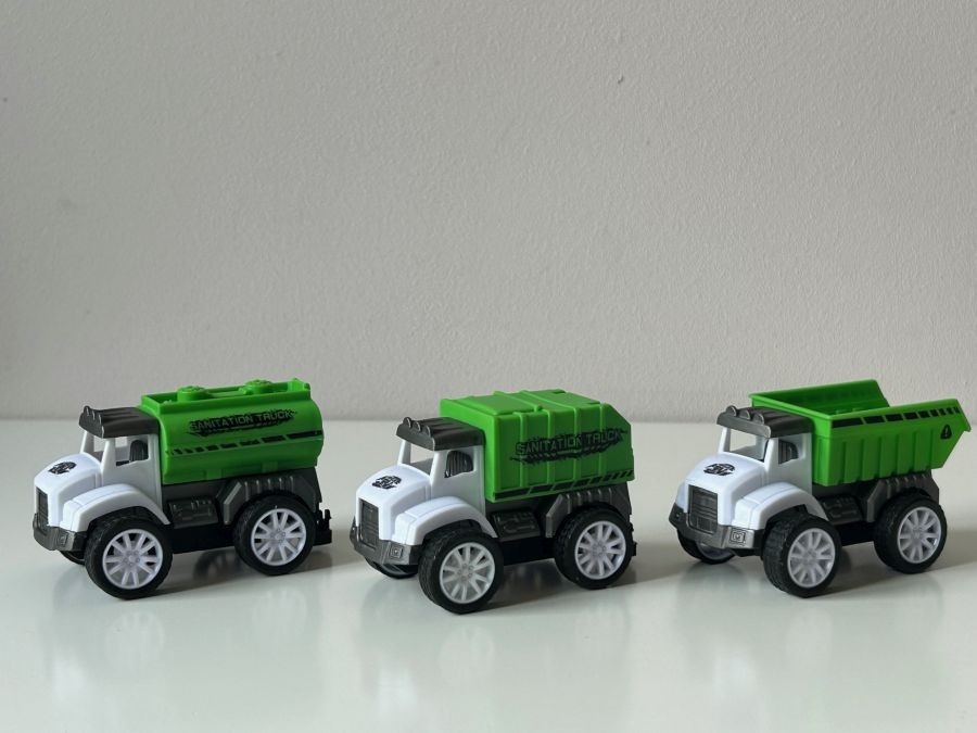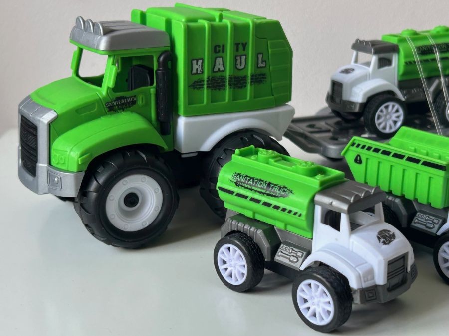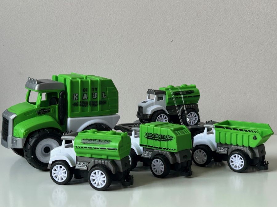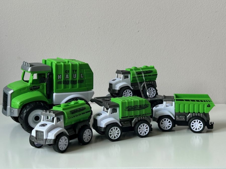Set 5 Sanitation Cars + Transporter Model Toy New in Box Function Pull-Back