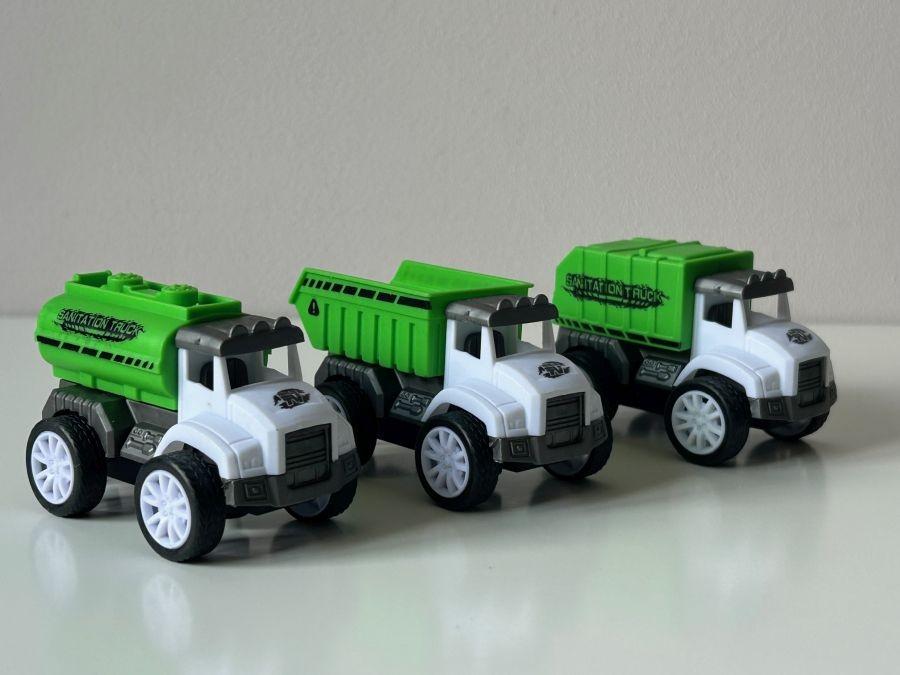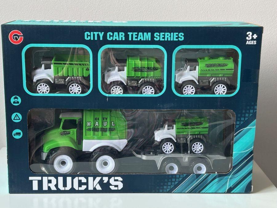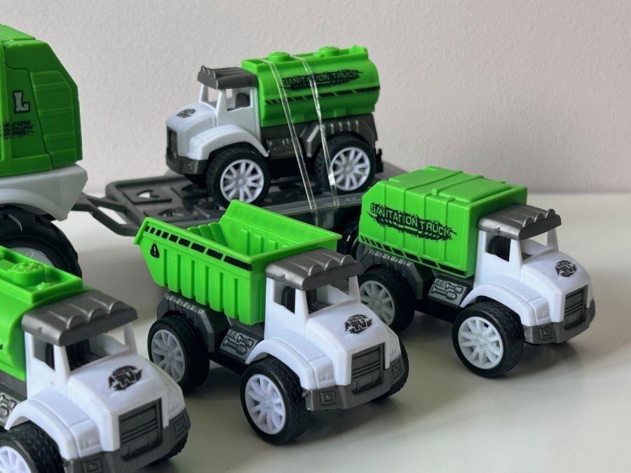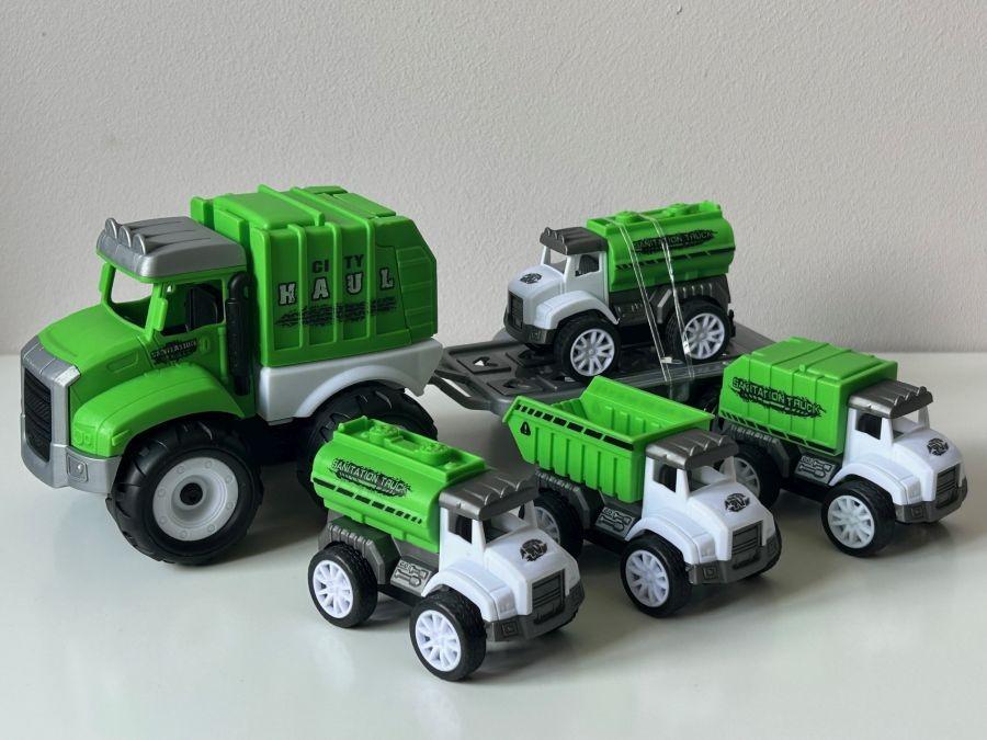 Set 5 Sanitation Cars + Transporter Model Toy New in Box Function Pull-Back