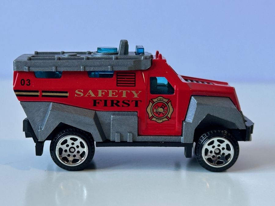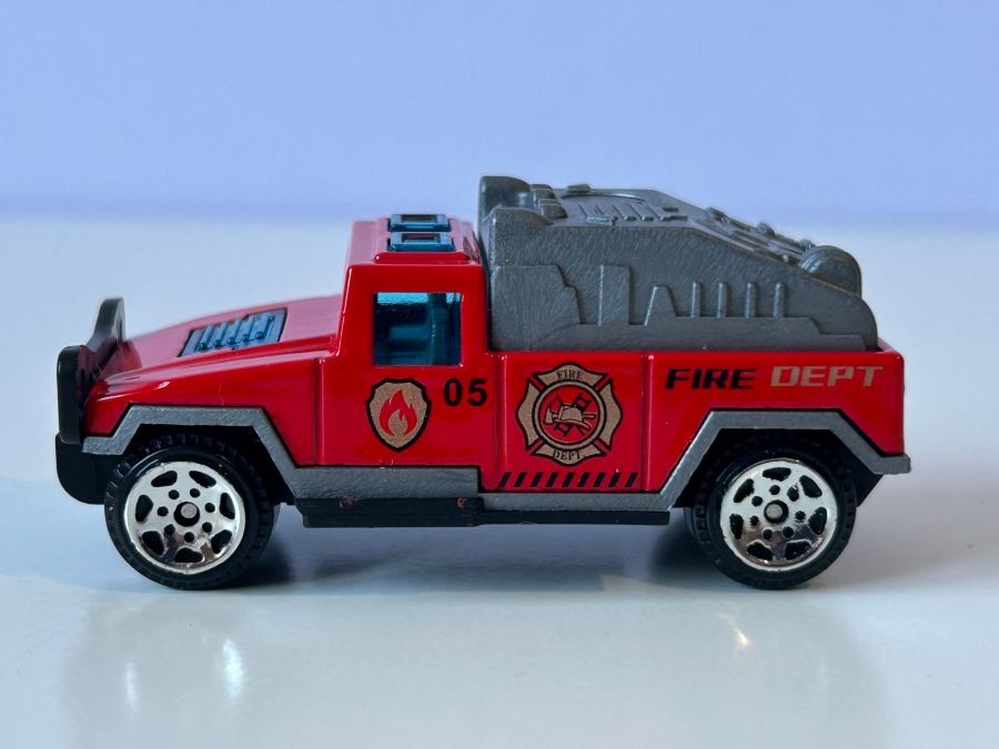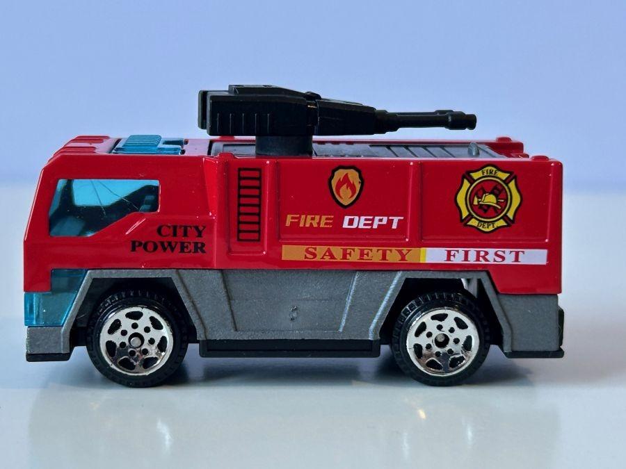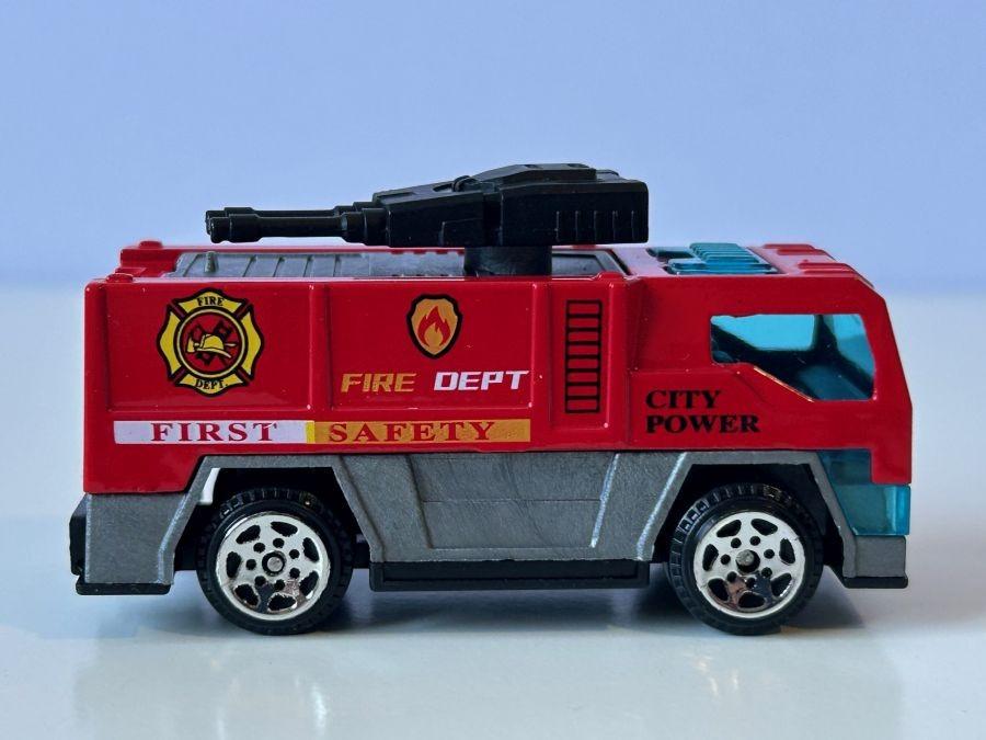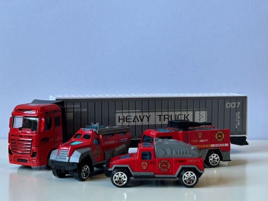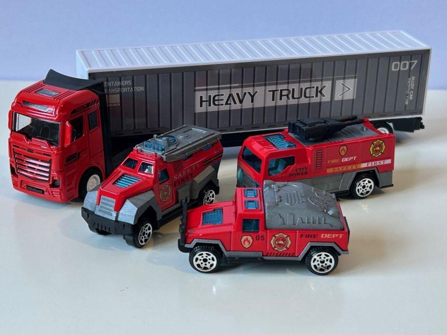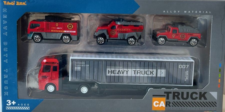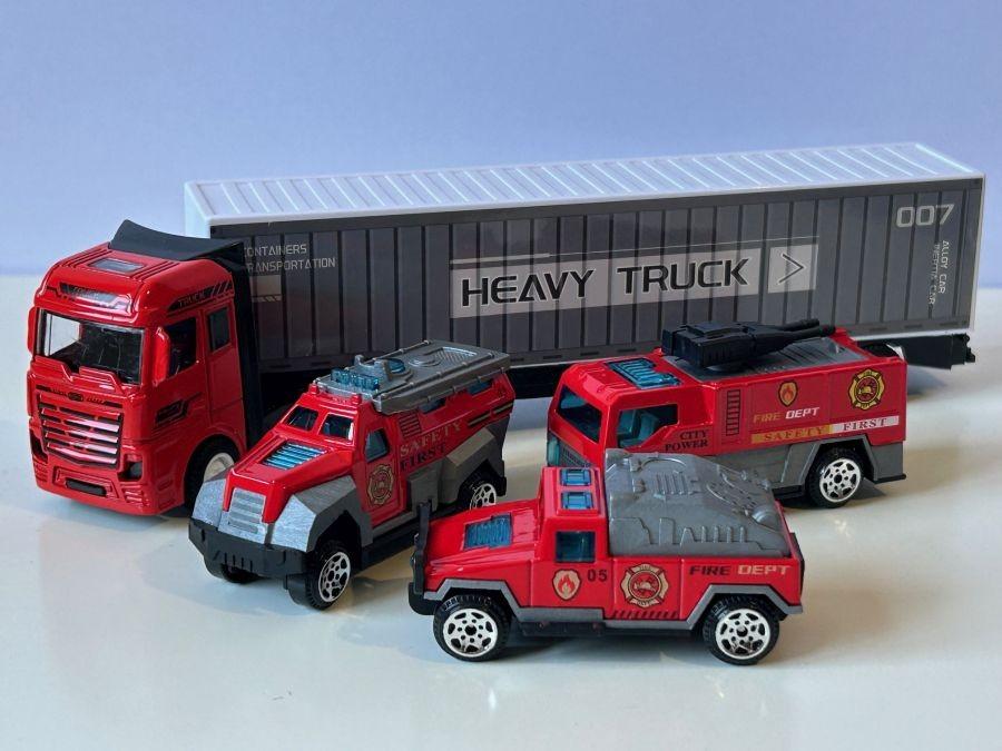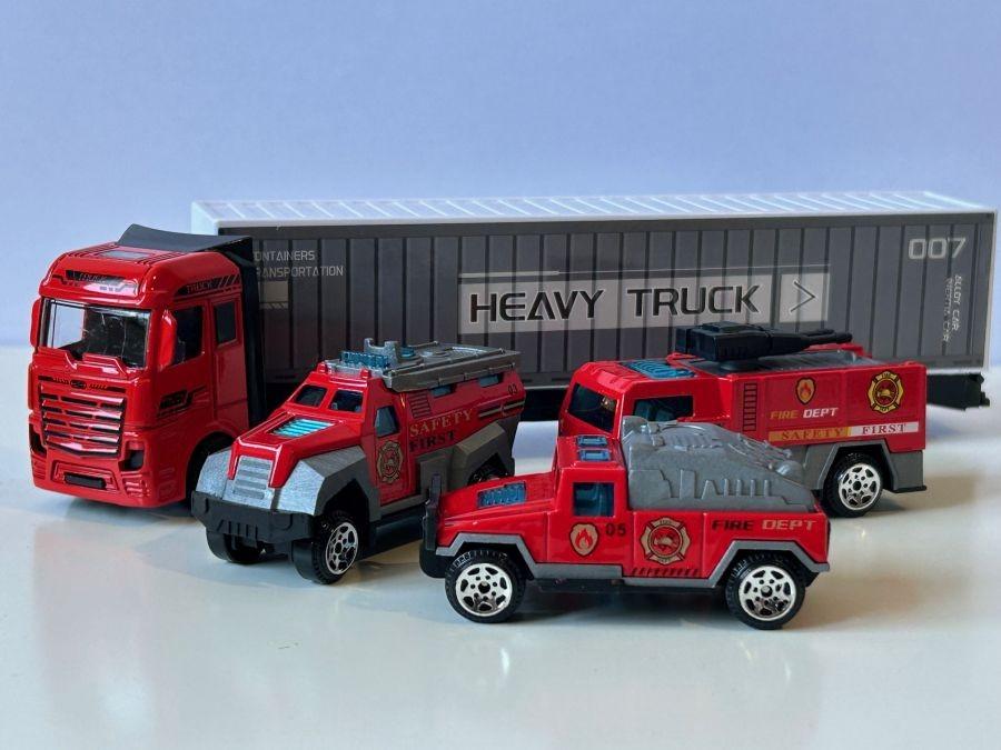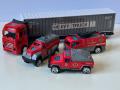 Lorry/Truck Transport + 3 Cars Fire Dept Model Alloy Toy Probabaly 1:64 Scale