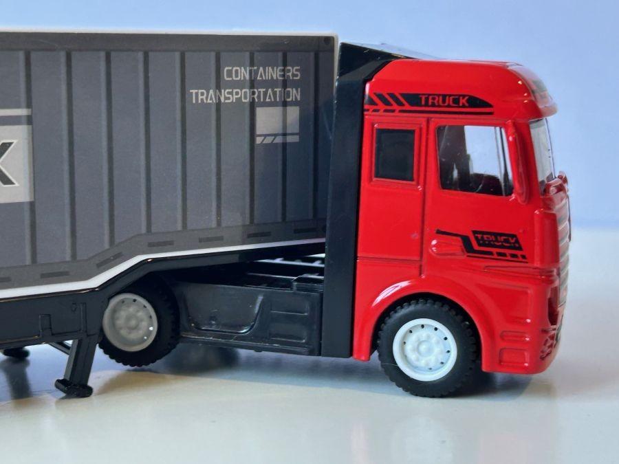 Size (LxWxH, cm): 30x4x16 (approx. box) + 22x6 cm (approx. truck) + 7 cm (approx. car)