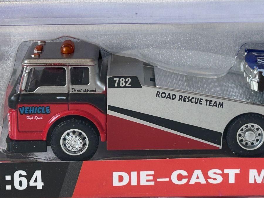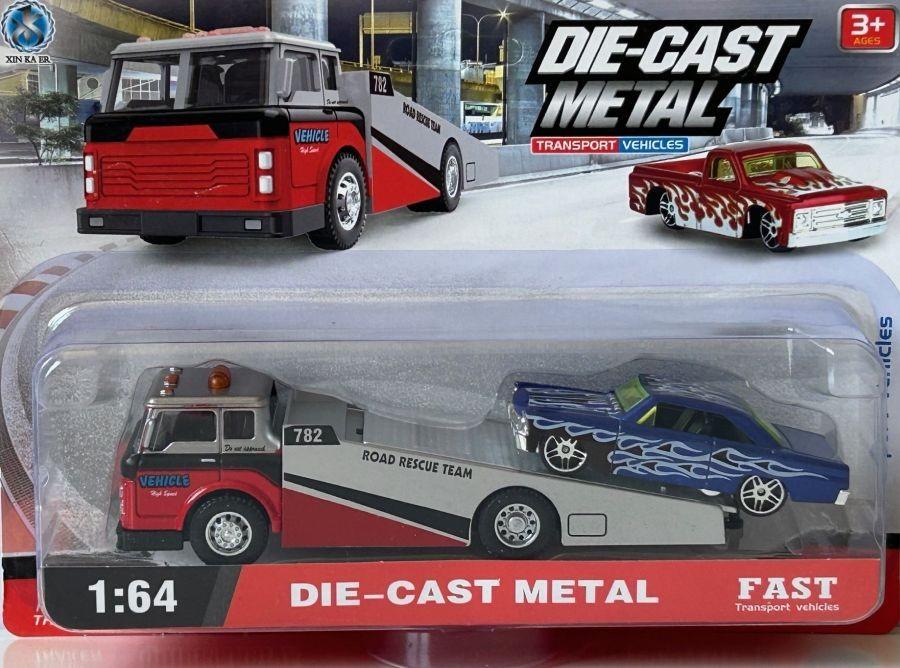 Lift Tow Truck Roadside Rescue Transport + Blue Car Model Diecast Toy 1:64 Scale