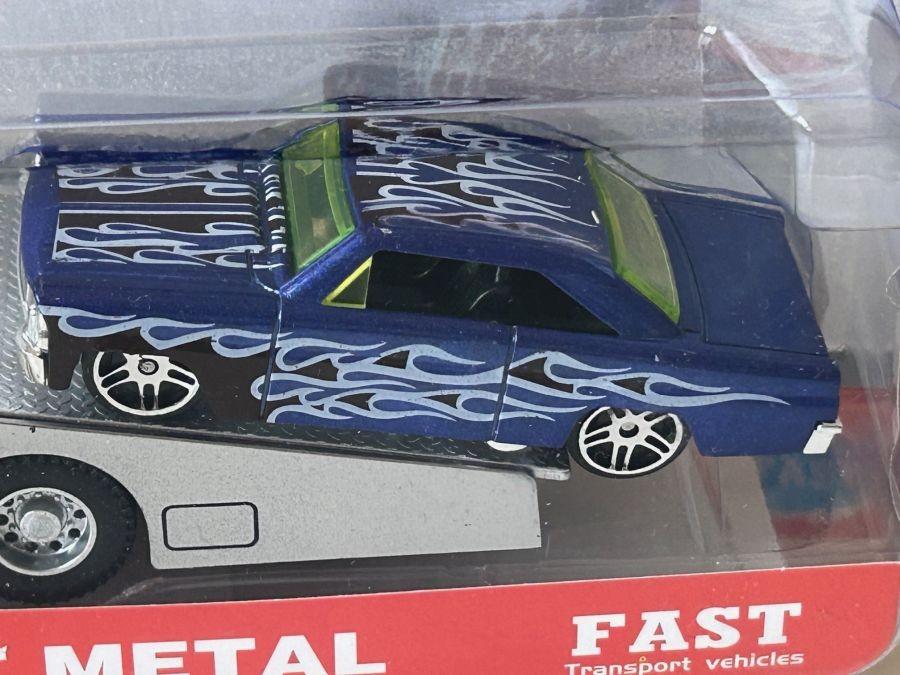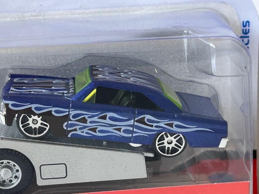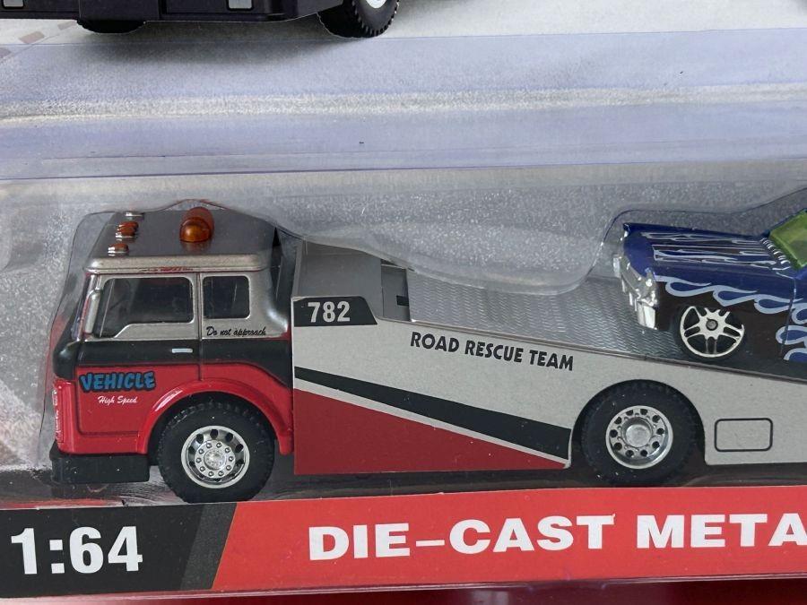 Size (LxWxH, cm): 14-15 cm (approx. truck transporter), 8 cm (approx. car)