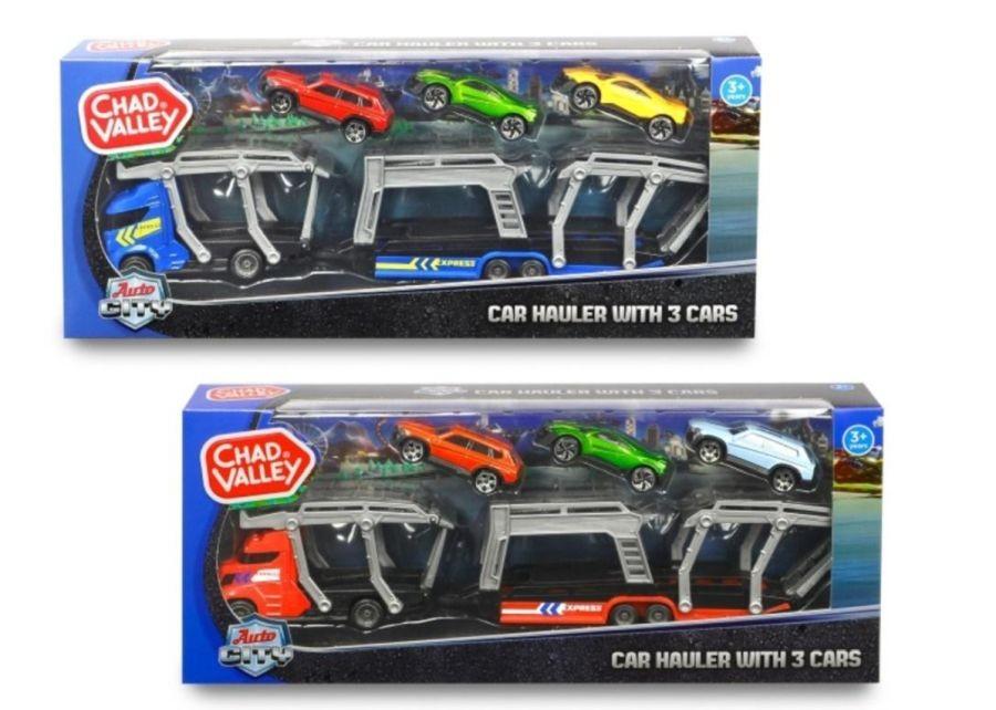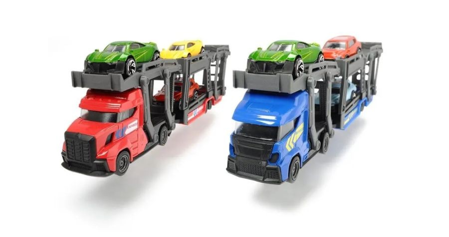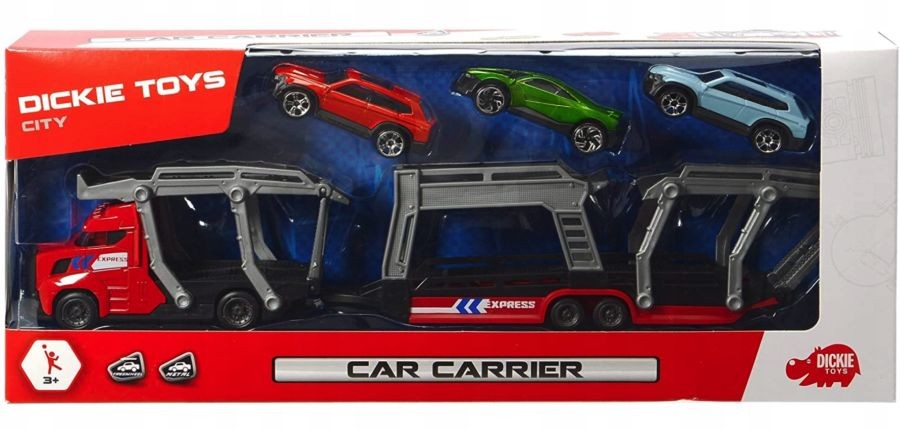 Blue Car Carrier Lorry/Truck +3 Cars Model Toy Diecast 1:64 Dickie Toys