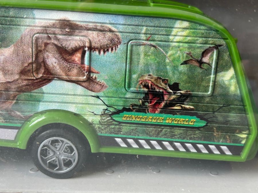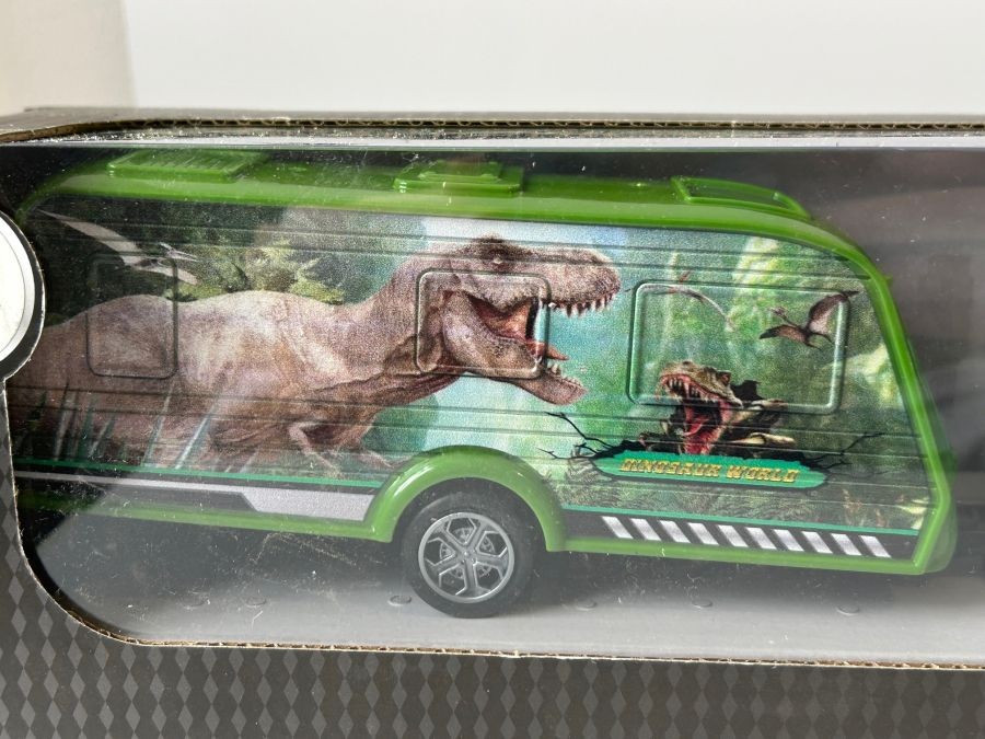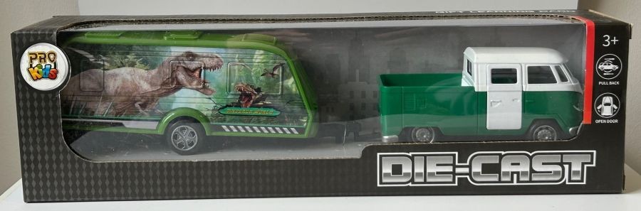 Volkswagen Bus Car with Dinosaur Trailer Model Toy Diecast 1:32-1:34 Scale