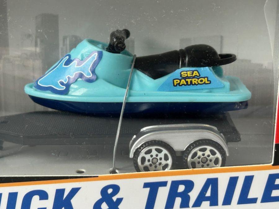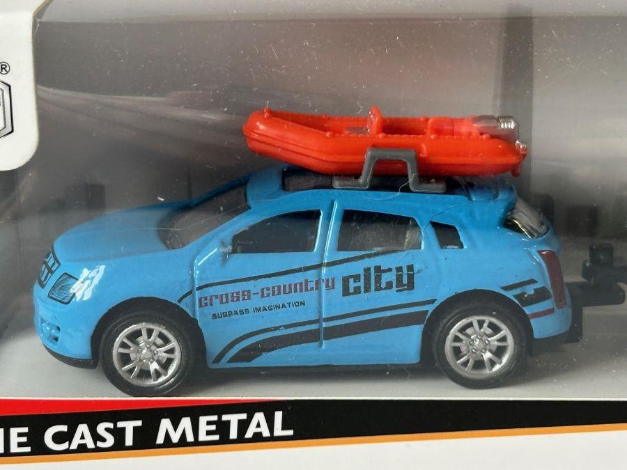 Holiday Set Blue Car + Trailer Blue Boat Model Diecast Toy 1:55-1:64 Scale