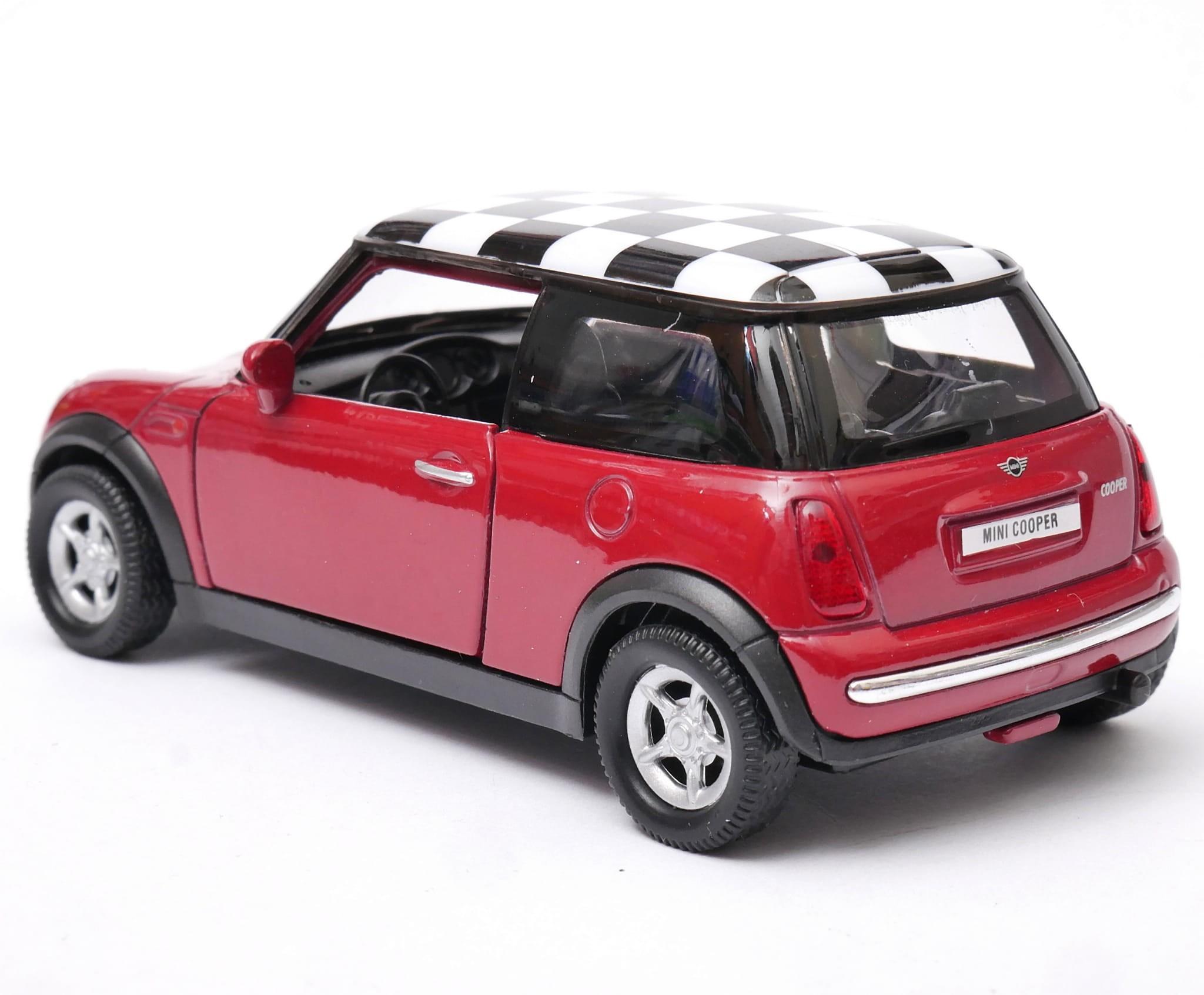 Mini Cooper Chessboard British Car Model Toy Diecast Red 1:34-1:39 Scale Welly
