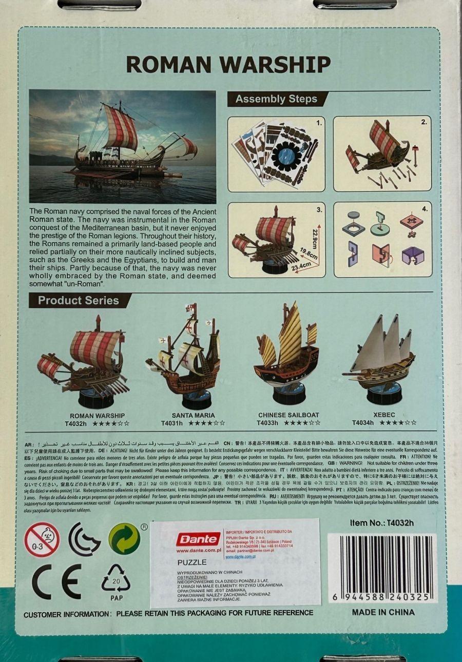 Toy Jigsaws 3D Puzzle Cubic Fun Ship Roman Warship 50-49B.C. 85 Pieces