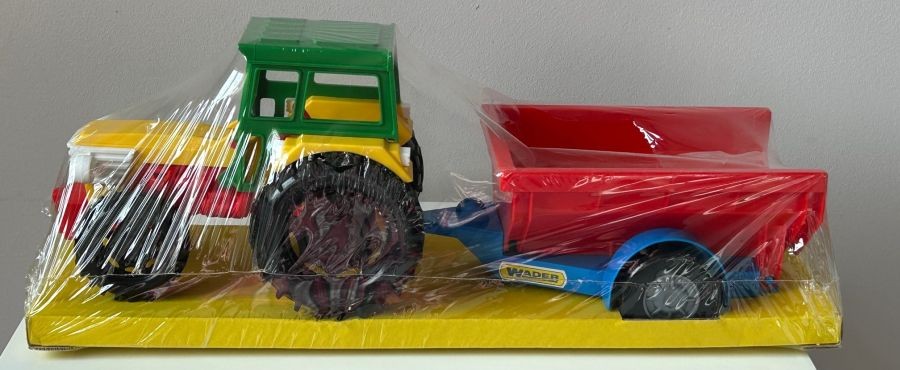 Tractor Farm with Red or Blue Trailer Toy Moving Parts 36 cm Lenght Wader