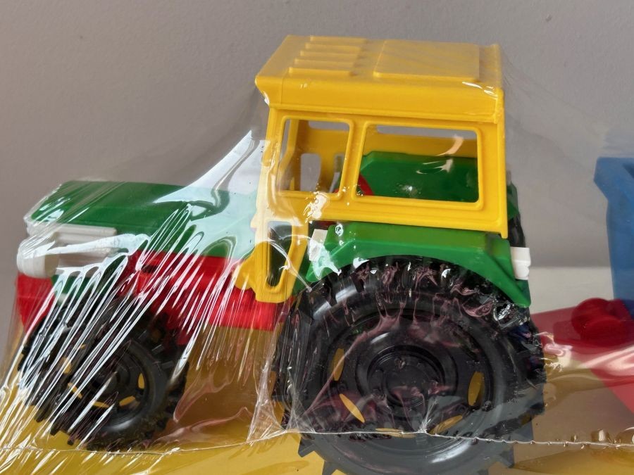 Size (LxWxH, cm): Toy Set (36 cm lenght), 17x13 cm (approx. tractor), 19x10 cm (approx. trailer)