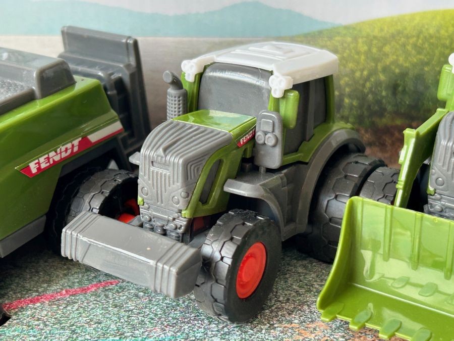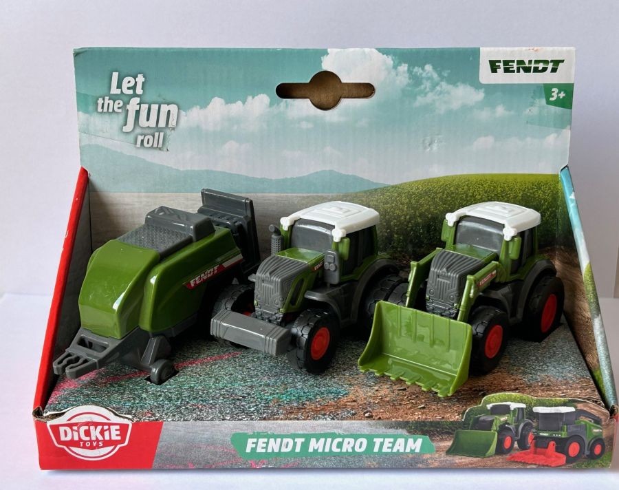 Set 3 Vehicles Fendt Micro Team Tractor Baler Loader Dickie Toys Moving Parts
