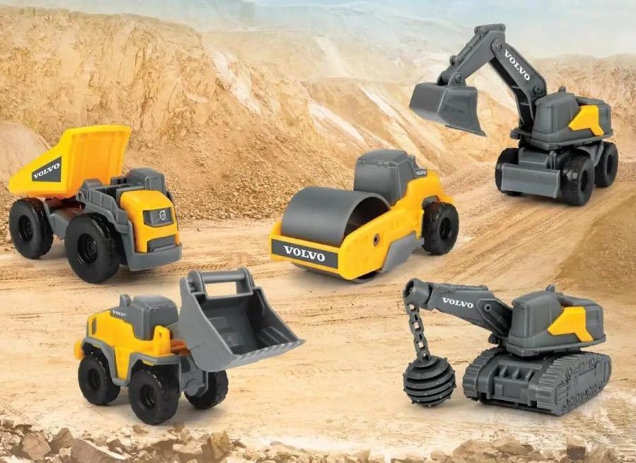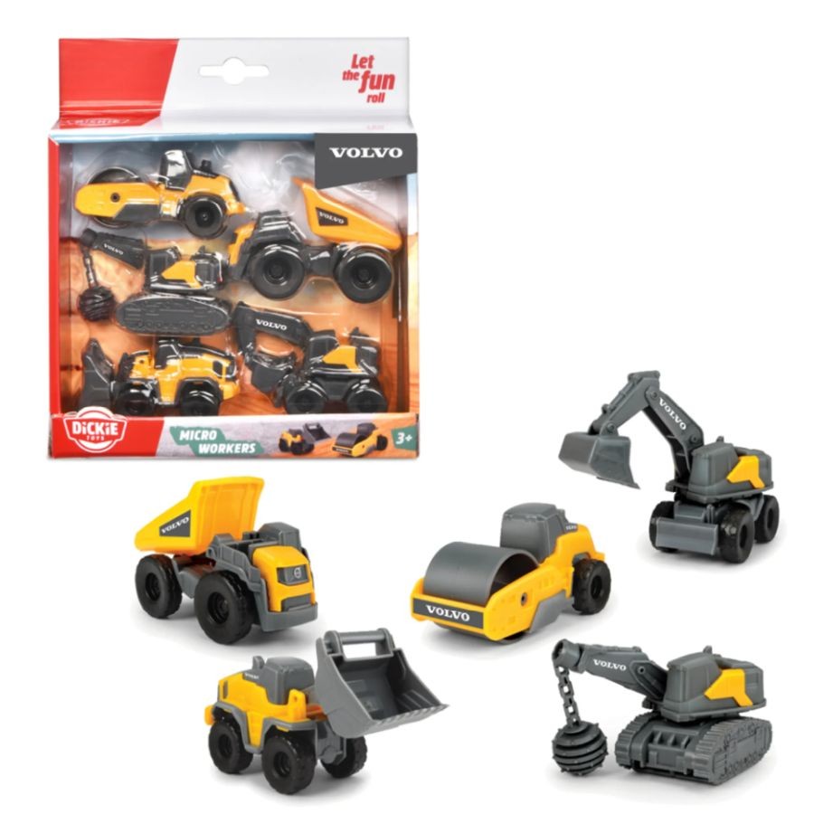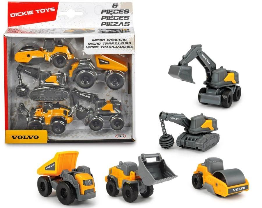 Set 5 Vehicles Volvo Roller, Dump Truck, Excavator, Bulldozer Dickie Toys